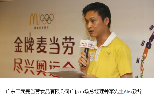 廣東三元麥當勞食品有限公司廣佛市場總經理鐘軍先生Alex致辭