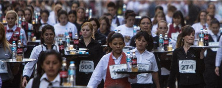 阿根廷舉行餐廳服務員“端盤子競走比賽”
