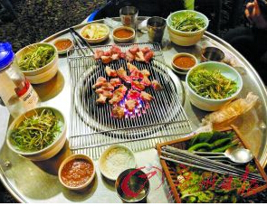 “為了吃上一頓韓國(guó)烤肉,大家拼命往前騎,這成了每天騎行的目標(biāo)。”車(chē)友龍輝開(kāi)玩笑說(shuō)。這位美食家絕對(duì)是“吃貨”中的高手,每次騎行隊(duì)抵達(dá)一站,不管早晚他都為大家覓食。抵達(dá)浦項(xiàng)后,龍輝很快找到了一家烤肉店,從超市高昂的肉價(jià)推斷,烤肉肯定是奢侈品。不過(guò),車(chē)友們已顧不上價(jià)錢(qián),一盤(pán)肉不夠,就再上一盤(pán)。雖然韓國(guó)泡菜免費(fèi)、美味,但每餐的費(fèi)用不低,7000韓元一餐(約合人民幣42元)基本上沒(méi)有肉,有肉的至少要1萬(wàn)韓元。