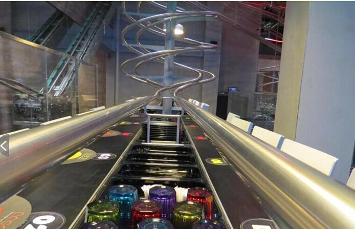 據報道,該餐廳名為ROGO's,餐廳內每張餐桌都配備有專門為其設計的過山車軌道,共30多條,客人通過智能終端點餐,裝在密閉容器中的食物通過這些過山車軌道被投遞到客人的餐桌上。軌道上的傳輸系統保證了食物運輸途中的零噪音,全程自動化操作,非常便捷高效。