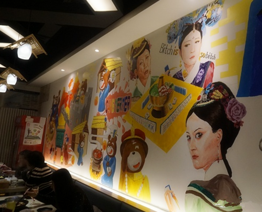 然而追求美食本身的同時,已不能滿足立志做一個不一樣火鍋店的愿望。店里最醒目的就是一副巨大的18平米手繪墻畫。這個墻畫里面可是藏著貨真價實的“紅包”——每一位進店的小伙伴都可以抽取紅包拿到問題,去壁畫中尋找答案,答對就有對應的現(xiàn)金折扣。還有唱片墻、紅酒墻、照片墻……幾乎每一個角落里面都是暗藏玄機,店內(nèi)百種創(chuàng)意玩法!