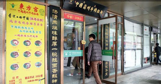 過去的一年多時(shí)間里,梁建突然發(fā)現(xiàn)北京城的大街小巷里多了很多黃底藍(lán)字的招牌“東方宮中國蘭州牛肉拉面”,對此梁建的評價(jià)是“老實(shí)說很接近或者已經(jīng)達(dá)到了在蘭州本地吃面的口味”。