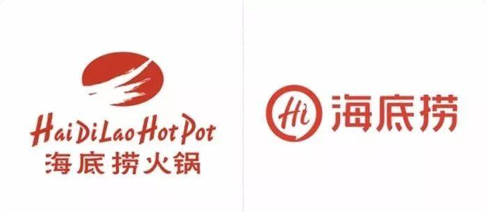 比如去年海底撈將使用了近23年的Logo換成了一個(gè)更加抽象的“Hi”。